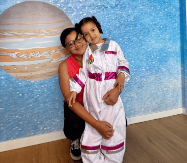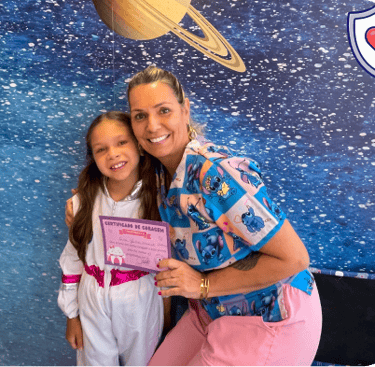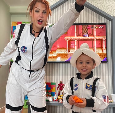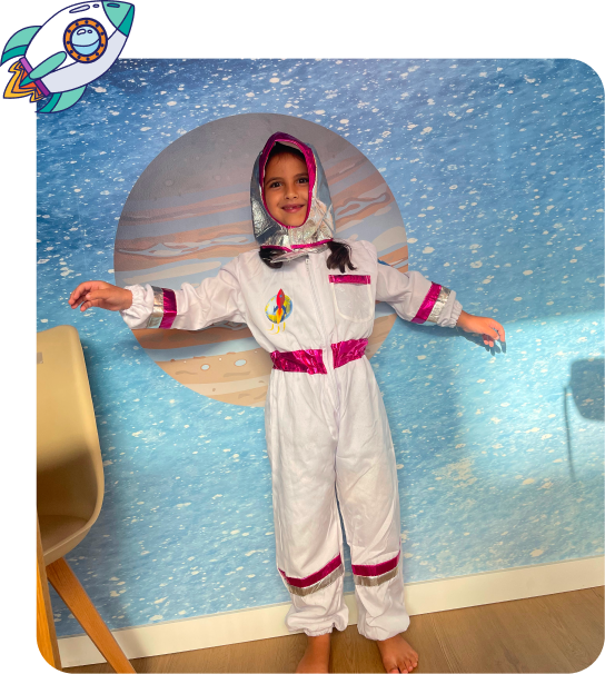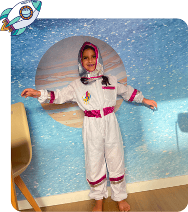 A experiência já começa com brincadeira, vínculo e imaginação, seu pequeno veste a roupa de astronauta logo no início.
